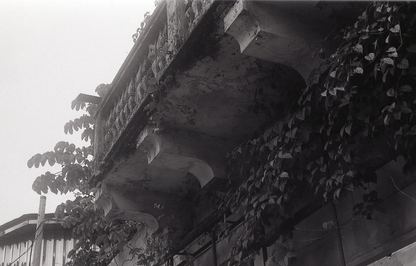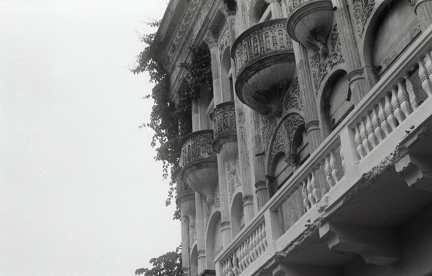 This slightly overexposed photo, accidentally so, shows a completely abandoned neoclassical building. It appears to have no roof — only the facade remains, gradually being overtaken by plants and vines. I hope that one day an entrepreneur with enough capital rescues this monument.